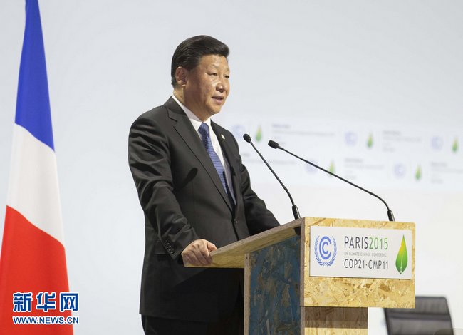 11月30日,国家主席习近平在巴黎出席气候变化巴黎大会开幕式并发表题为《携手构建合作共赢、公平合理的气候变化治理机制》的重要讲话。新华社记者 黄敬文 摄