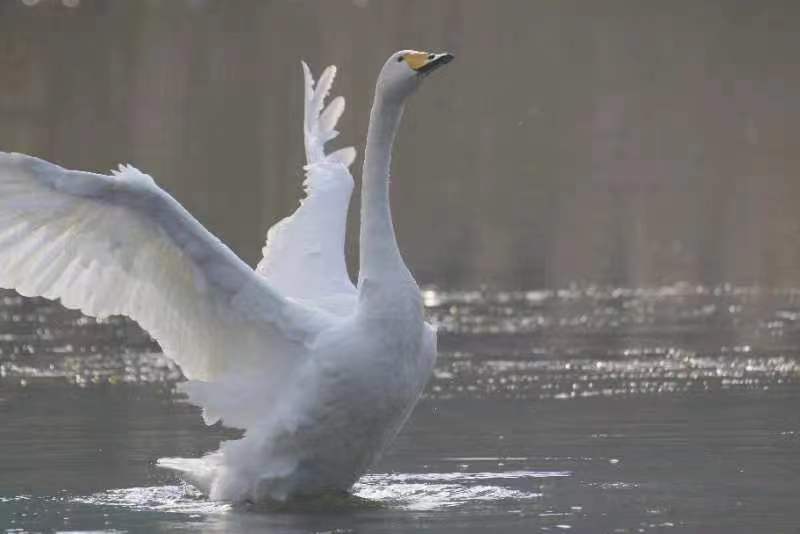 大天鹅为旅鸟,迁徙时会经过华北、华东地区,夏季多在内蒙古大草原、北极苔原等地繁殖。它们对生存环境极为挑剔,只有寻找到水质良好、食物丰富、环境安全的地方,方才落脚。