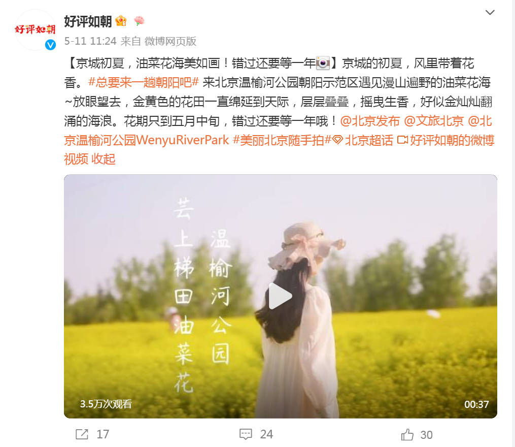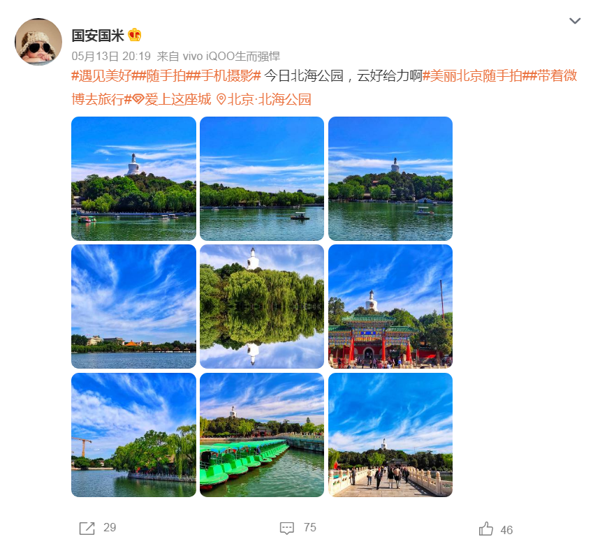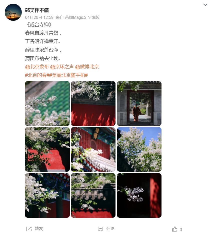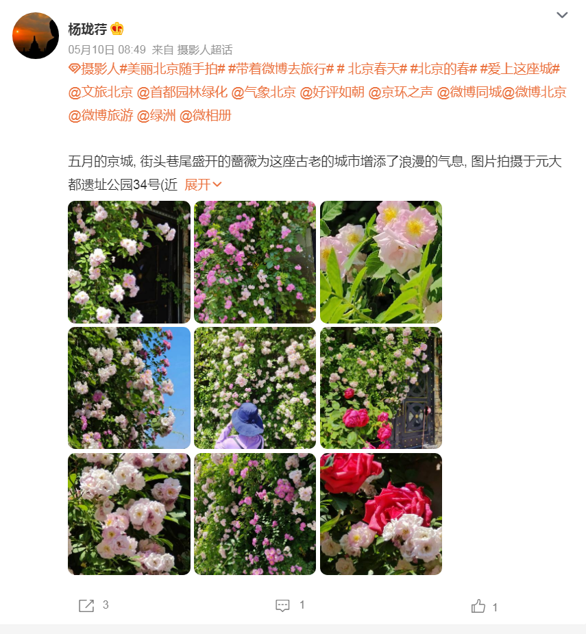 阳光很暖,风很轻, 抛开烦恼保持快乐, 新的季节总会有新的期待, 希望所有的美好事情都在夏天到来, 跟我们一起捕捉镜头里的小美好。 @京环之声联合@北京发布、@微博北京共同推出#美丽北京随手拍#话题挑战大赛,邀请大家用镜头记录下美丽北京。快跟随环宝一回顾网友的美图吧~ 点击视频,查收美好~