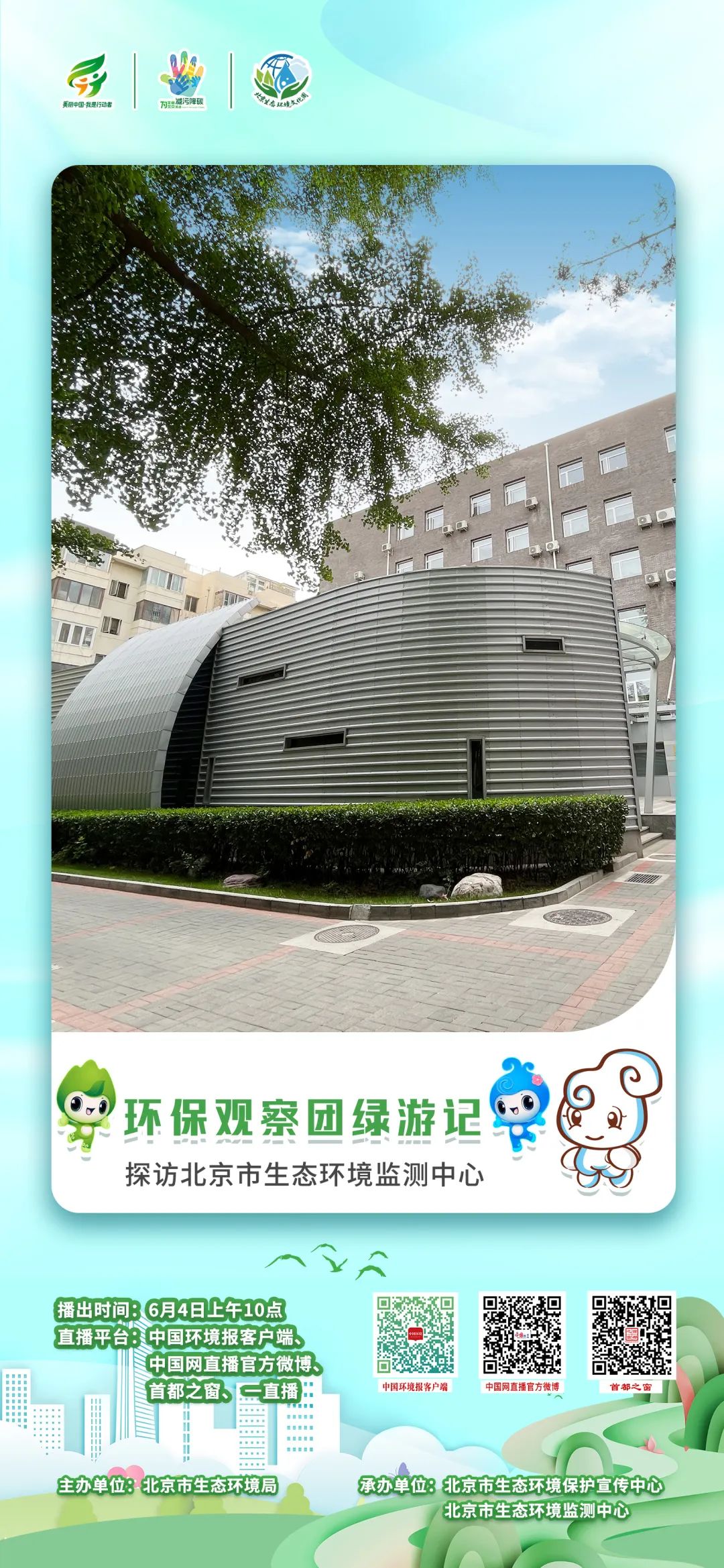 青翠繁茂 水绿交融 你是否还在从“绿水青山”到“金山银山”的 “丰台”模式中意犹未尽? 6月4日 10:00 “环保观察团绿游记” 直播探访活动第三季 将带你继续走进北京市生态环境监测中心 介绍北京十年空气质量改善历程 观看PM2.5组分分析实验 探索多类型大气监测方法 了解空气质量预报预警技术体系 一串串研究数据 一个个科研成果 见证了北京生态环境的十年之变 大气治理从“漫天撒网” 到“精准定向” 实现了蓝天常驻、绿水长清 创造出“北京奇迹” 美丽北京 十年有你 第十届北京生态环境文化周 更多精彩活动 可扫码下方二维码关注活动微站 第十届北京生态环境文化周 更多精彩活动 可扫码下方二维码关注活动微站 编辑:张雪晴