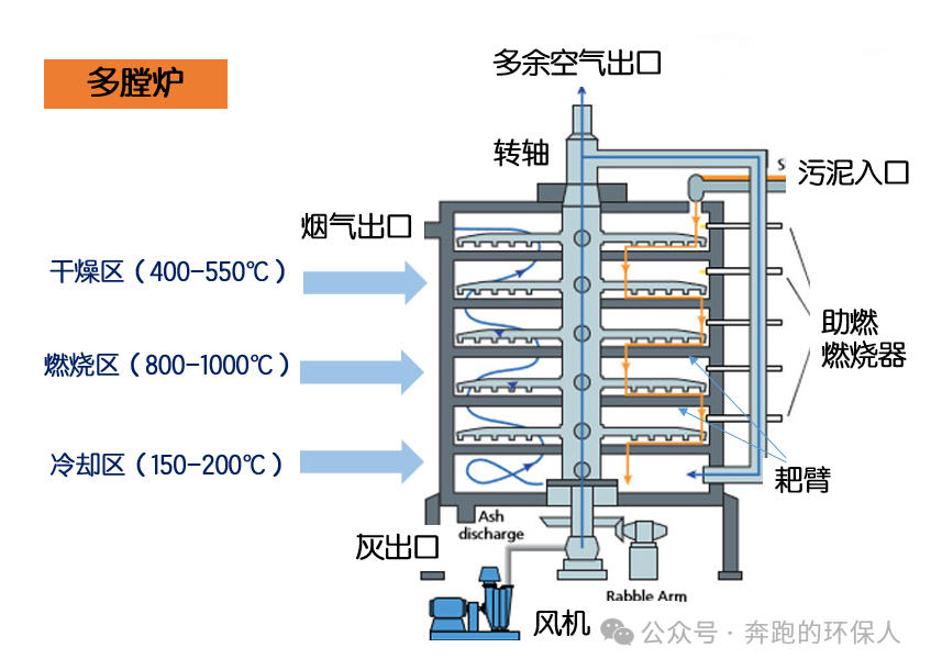 同样的污泥,采用流化床焚烧炉,需要添加的辅助燃料会比多膛炉少,且烟气处理量更小。
