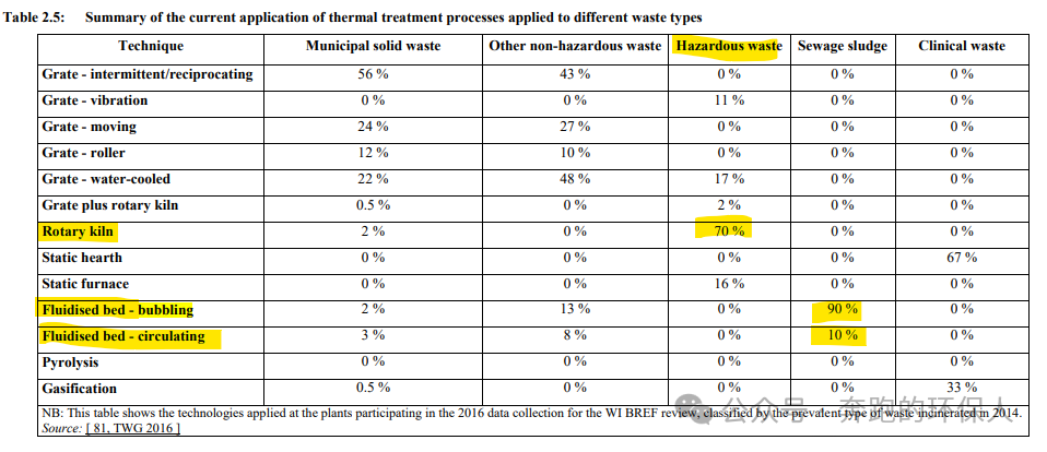 从欧盟2016年统计的几种炉型在各个废弃物焚烧领域的应用看,市政污泥90%的焚烧炉为鼓泡式流化床,10%为循环流化床;回转窑则占据了危废焚烧领域70%的应用。