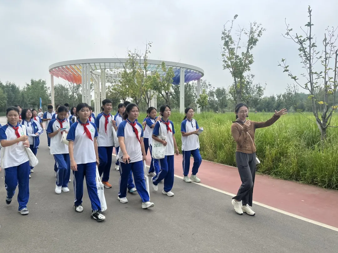走进公园,绿意盎然,同学们跟随公园工作人员参观了碧水湖乡、欢乐绿荫、画里田园等打卡地,边走边用镜头记录自然美景,并与工作人员积极互动交流。“老师,这个公园这么大,是如何管理这些花草树木的呢?”“老师,这个公园的生物多样性情况如何?一共有多少种鸟类呢……”在工作人员的介绍下,同学们得到了答案,原来,公园的雨水不外排、中水可循环利用,这些绿地均有节水型喷管设施进行浇水,非常节水环保!公园内有鸟类65种、鱼类35种,可以说,处处生机勃勃,充满了鸟语和花香!