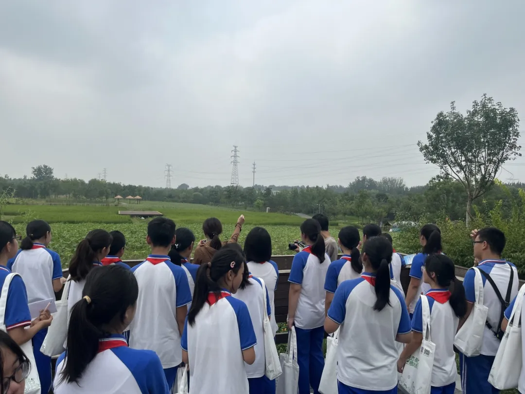 深入公园内部,同学们一同到达了“晴耕雨读”区,在工作人员的带领下,大家一起登上高处的匏瓜亭,眺望远处的美景,每个人都被眼前一望无边的绿色田园风景深深吸引了,忍不住多欣赏一会儿。随后,在老师的组织下,同学们一起在亭内进行了知识问答和朗读活动,在户外课堂中了解更多的生态环保故事。“我们应该为生态环保做出更多的贡献,在日常生活中多多注意节约用水用电,践行绿色环保的生活方式,人与自然和谐共生很重要,良好的生态环境使我们的生活更加美好!”同学们纷纷说道。