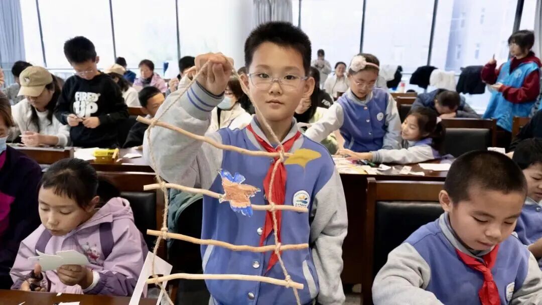 活动围绕“识羽知鸟”和“纸艺飞鸟”两大环节展开。在志愿者的指导下,小朋友们识羽毛、辨鸟类、听科普、学知识,用叶片、麻绳、纸板等材料动手制作充满童趣的鸟类手工艺品,不仅学习了十余种鸟类的特征与习性,激发了对自然的兴趣,还在趣味的手工过程中,增强了保护鸟类的意识,收获颇丰。