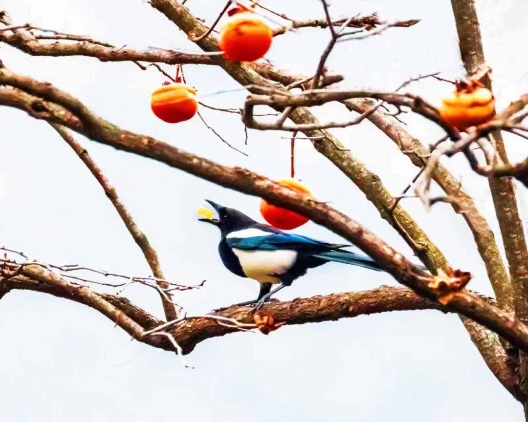 如果说红墙金瓦的秋是盛装的华章,那么寻常巷陌的秋,就是一首温暖的民谣。你看,喜鹊啄食着坠落的柿浆,石榴咧嘴露出晶莹玛瑙。波光间,水鸟划过,漾开了整个秋天的静谧……