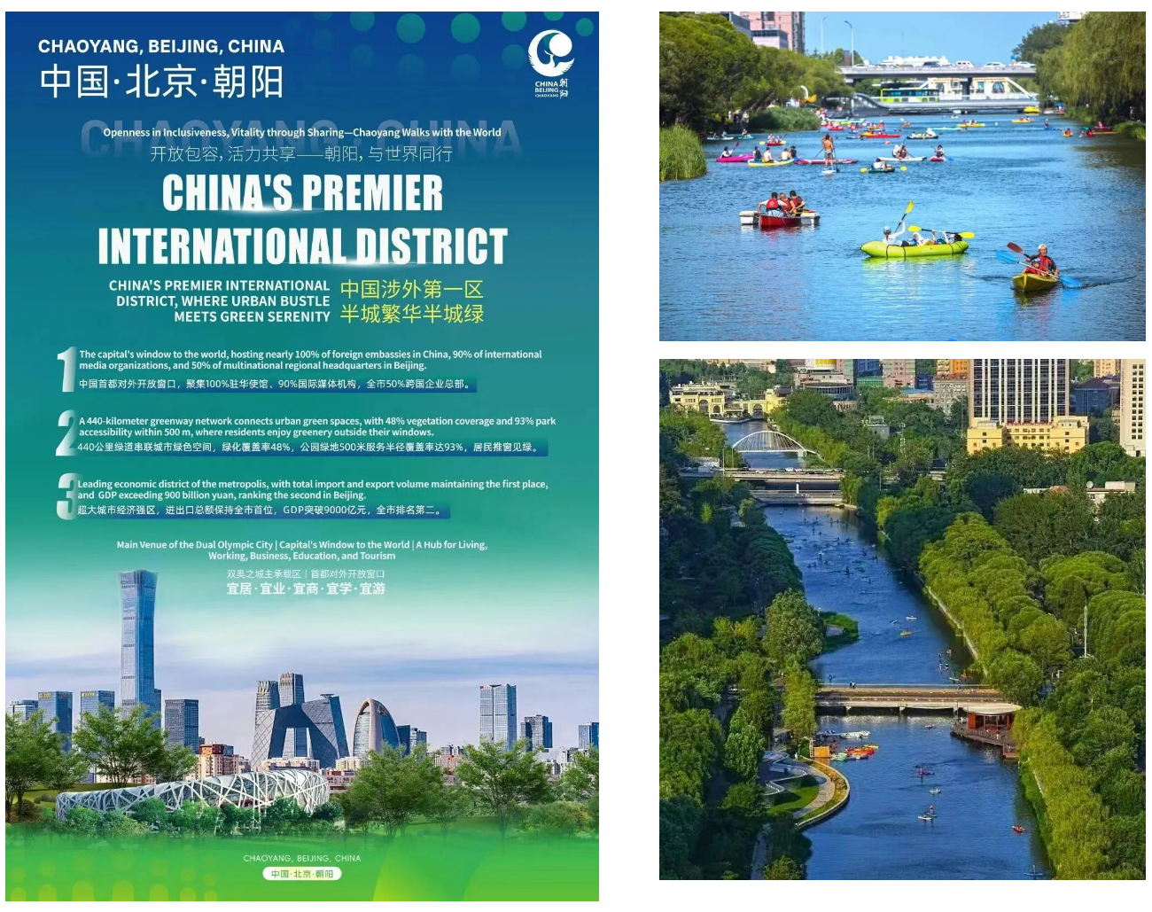 朝阳区实现了亮马河从劣Ⅴ类黑臭河道到Ⅲ类水质的大幅跨越,打造了“1河2湖24桥18景”国际风情水岸,年接待游客超500万人次;同时,持续推进“减量集约、高质量发展”,构建“两轴两带三区”空间布局与“两环六楔、五河十园”生态格局。