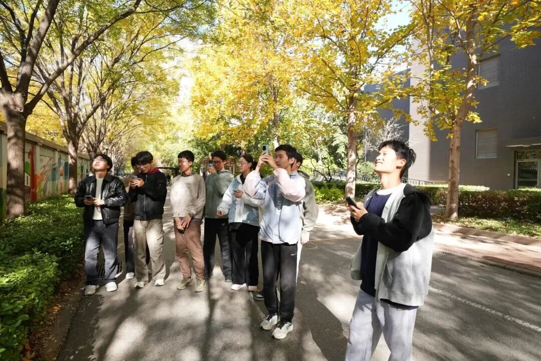 “原来教学楼前那棵高大的树是水杉,属于裸子植物,它的球果和普通果实完全不一样!”在志愿者的提问中,同学们借着回答问题将裸子植物与被子植物的区别、常绿植物与落叶植物的生长规律等知识牢记于心。有人拿着手机记录植物的秋天,有人拾起落叶珍藏时光,还有人组队打卡拍摄,每一个认真探索的身影,都是校园里最动人的风景。