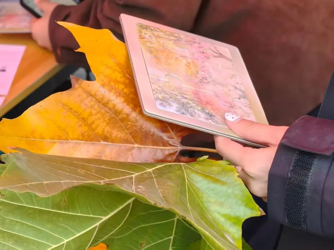 同学们在完成现场报名后,手持地图,踏上了一段融合观察与思考的植物解密之旅。每答对一道与植物特征相关的问题,即可获得一块对应的植物拼图碎片。从洋白蜡的披针形叶缘,到枫叶由绿转红的季节密码;从银杏枝条的坚硬触感,到月季多季绽放的生命节奏——同学们在细致观察、热烈讨论中,不仅加深了对校园植物的了解,更感受到自然生命的蓬勃张力。