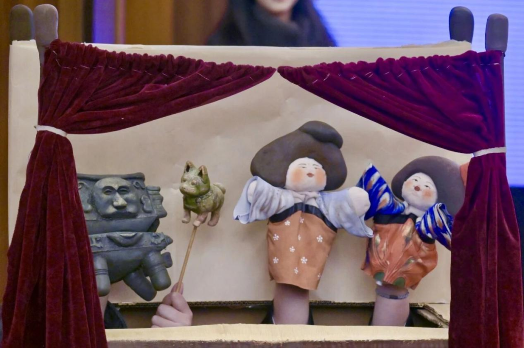 作品创意源自非遗“泉州布袋木偶戏”,利用废旧材料手工制作俑偶与舞台,并为文物配以方言乡音,在跨越时空的趣味对话中,唤醒文化记忆,实现废品重生与文物“复活”的双重奇迹。