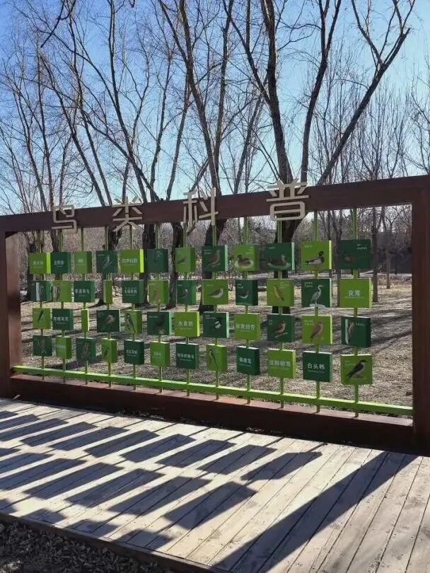 近日,丰台区生态环境局在南苑森林湿地公园新安装了一批鸟类科普专题宣传栏。宣传栏以生动翔实的内容、图文并茂的形式展示了湿地鸟类的奇妙世界,助力全区进一步提升生物多样性保护宣传氛围。