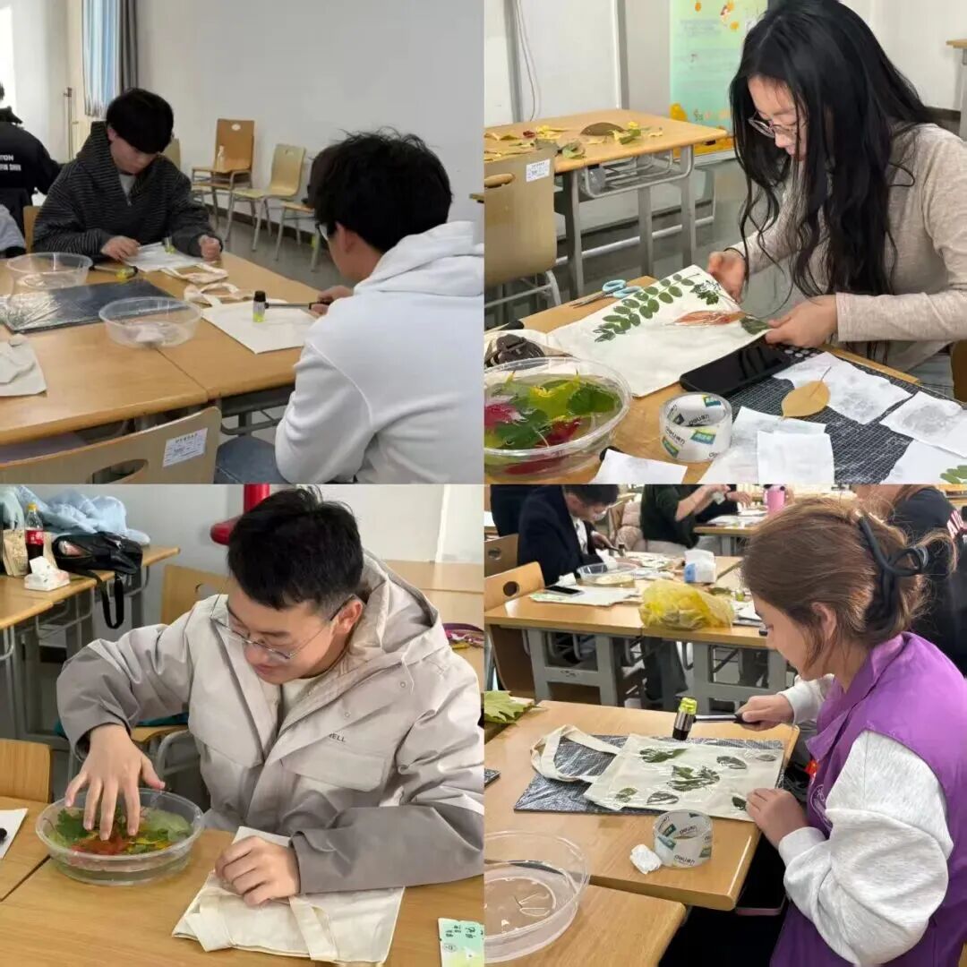 是对环境的热爱,让大家走出校园深切感受人与自然和谐共生。大家在植物拓印的创作过程中,体会资源循环利用的意义。漫步在校园内外,同学们以镜头为笔,以足迹为墨,在行走与观察中读懂与自然共生的浪漫密码。