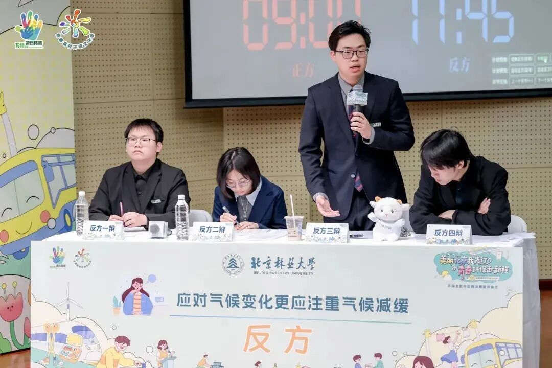 应对气候变化更应注重气候适应还是气候减缓?在闭幕式暨辩论赛决赛现场,来自国际关系学院与北京林业大学两支辩论队伍围绕这一辩题,现场开启唇枪舌剑的“终极较量”。双方你来我往,据理力争,展现了当代大学生扎实的生态环保知识储备,引发阵阵喝彩。