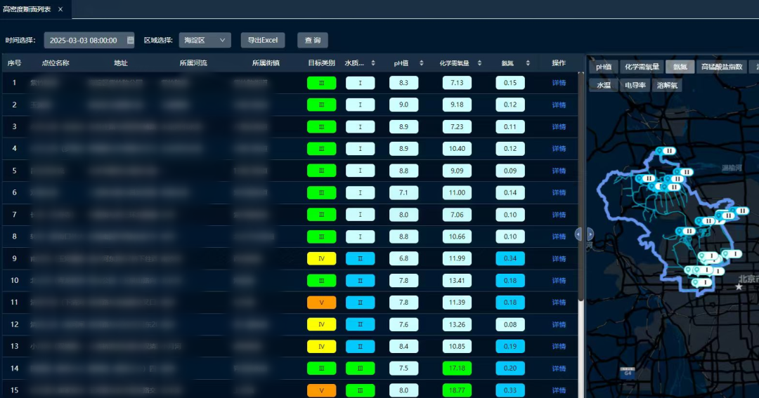 以构建现代化监测体系为目标,依托海淀区生态环境综合管理平台及306个国-市-区三级自动监测站点,构建覆盖大气、水、声、辐射等多要素实时感知网络。通过“月查、季巡、半年检”的分级巡查机制与“运维单位-属地街镇-监管部门”三级联动体系,全年巡查站点984站次,处置异常点位72次,有力保障监测设施安全稳定运行,自动监测设备在线率达93%以上。依托生态环境监测网络开展实时监控与数据分析,深化“三监联动”机制,全年累计出具各类监测分析报告报表945份,推送高值报警信息及异常线索314条,为环境管理决策与精准执法提供有力数据支撑。