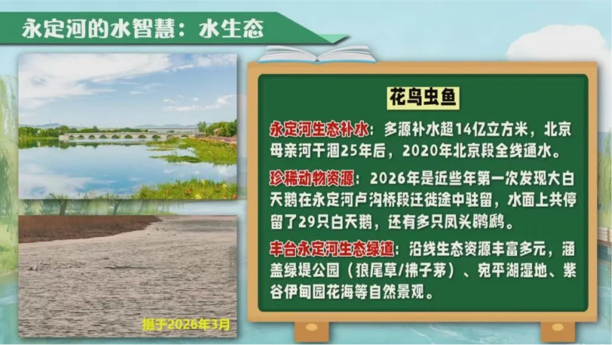 一湾永定水,千年生态韵。作为北京的母亲河,永定河绵延千里、滋养京西,承载着厚重的历史文脉,蕴藏着顺应自然、因水施策的古老水生态智慧。
