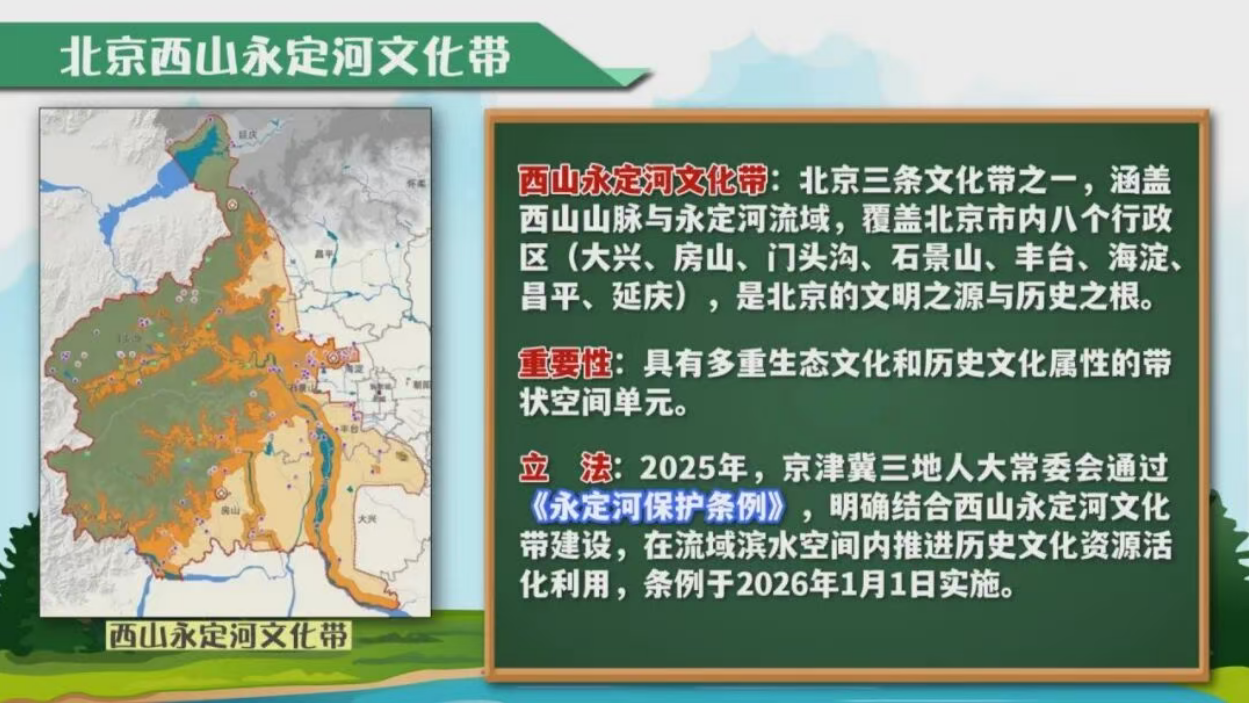 2025年,京津冀三地人大常委会相继通过《永定河保护条例》,这是京津冀首次就流域治理保护开展协同立法,推动永定河治理从“工程治理”向“系统治理”“依法治理”转变。《北京市永定河保护条例》提出结合西山永定河文化带建设,在流域滨水空间内推进历史文化资源活化利用,一幅“水绿相映、人水和谐”的生态画卷徐徐展开。