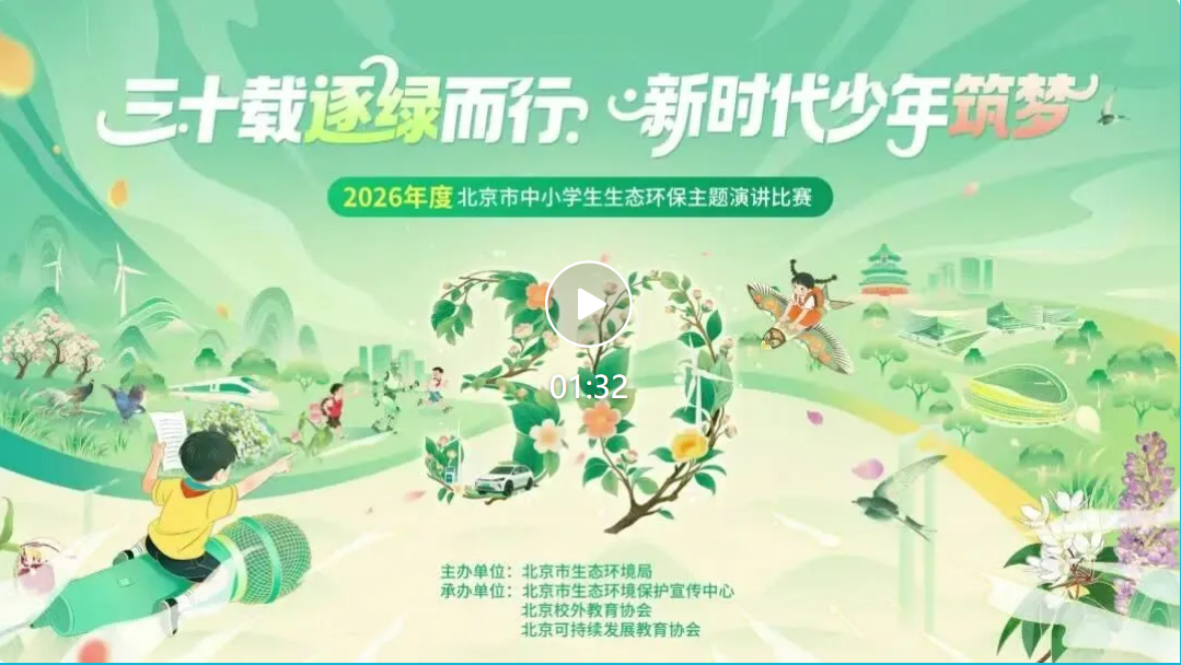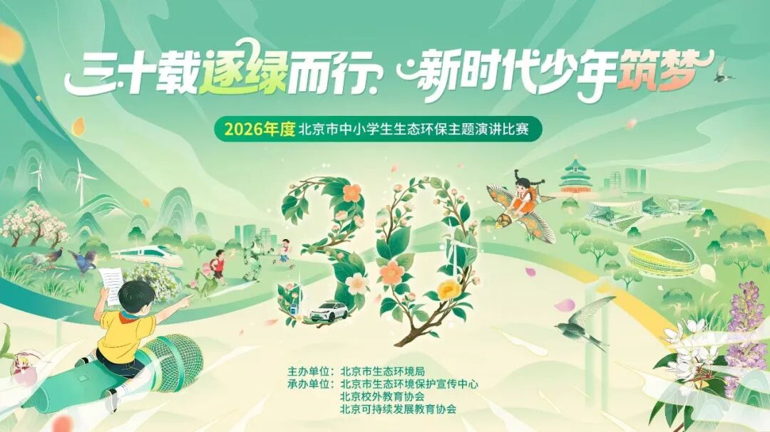 今天,2026年度北京市中小学生“我爱地球妈妈”生态环保主题演讲比赛正式启动!在这个特殊的三十周年之际,我们不仅邀请全市少年继续站上这个舞台,更想邀请每一个你——和我们一起,向那段共同走过的时光深深致敬,也向崭新的未来发出邀约。