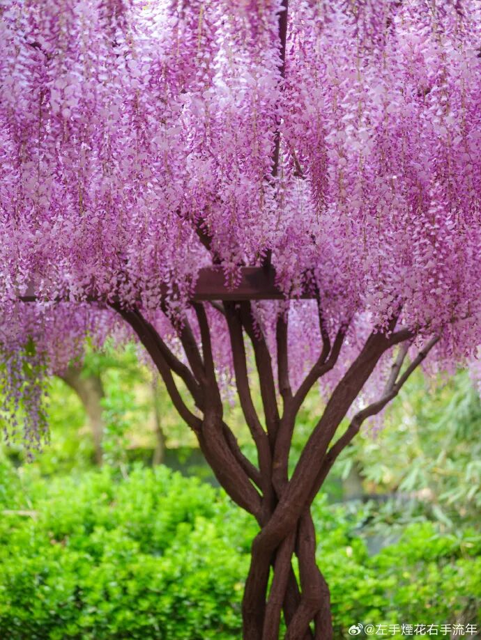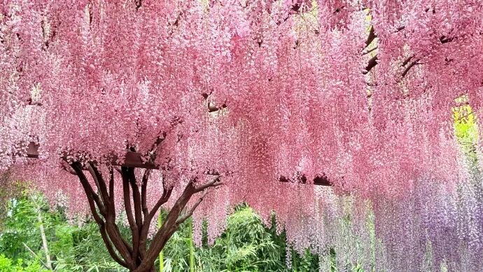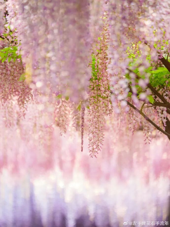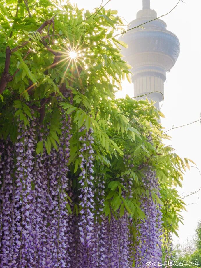 玉渊潭的紫藤垂成了一帘幽梦。浅紫、深紫、粉白……你站在花帘底下,光从缝里漏下来,风一吹,花穗轻轻摇,像青春在招手。