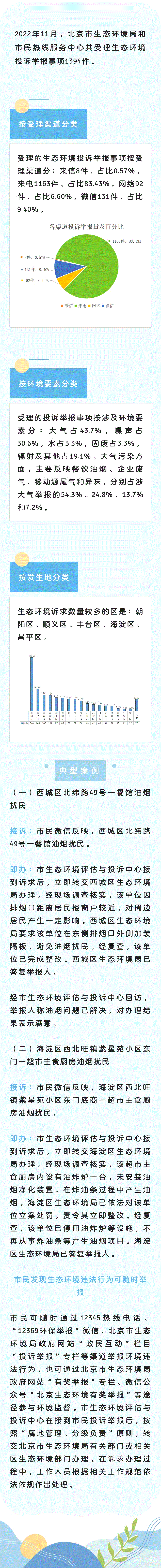 2022年11月北京市共受理生态环境投诉举报事项1394件