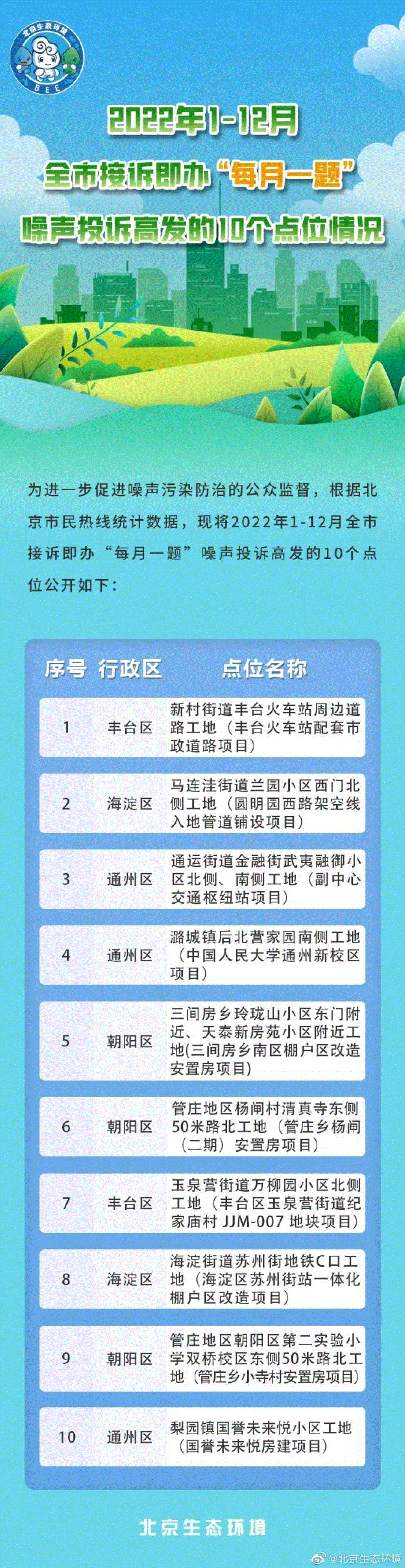 2022年1-12月全市接诉即办“每月一题”噪声投诉高发的10个点位情况