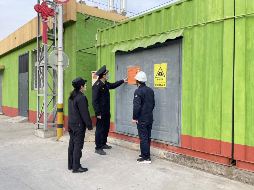 近日,朝阳区生态环境局对重点仓储物流企业开展跨部门综合执法。在执法过程中,执法人员优化执法方式,重帮扶、讲温度,发出全市第一份书面环保告知承诺书,营造良好的法治营商环境。