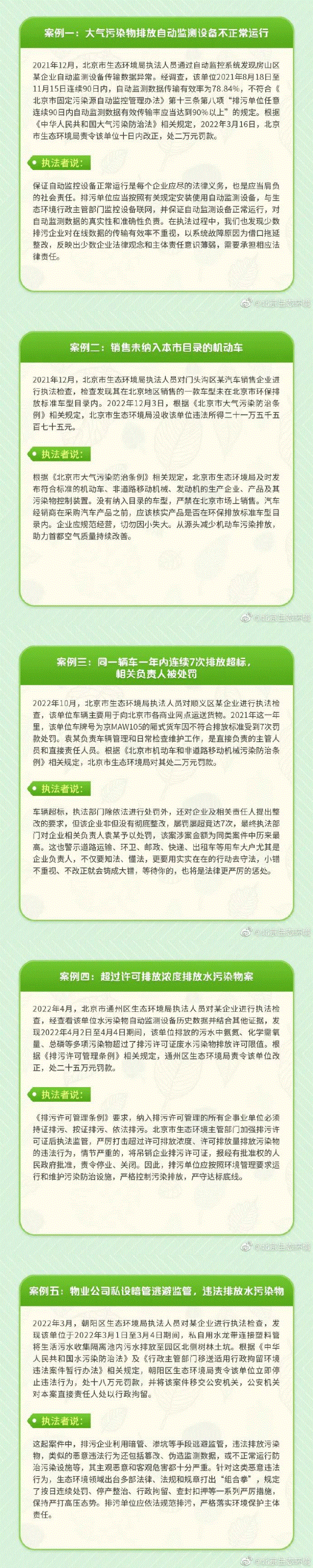 同一车辆7次超标“带病上路”,相关责任人被处两万元罚款;企业持证却不按证排污,多项污染物同时超标;私设暗管逃避监管,不但罚钱还被拘留……北京市生态环境部门通报了2022年生态环境违法典型案件,起到查处一个,震慑一批,影响一片的效果。