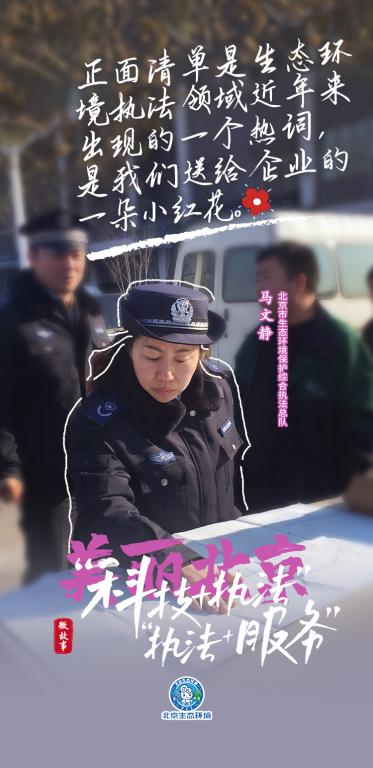 “正面清单是生态环境执法领域近年来出现的一个热词,是我们送给企业的一朵小红花。”北京市生态环境保护综合执法总队马文静说。