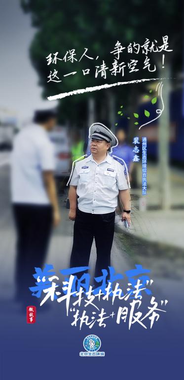 裴志鑫说:“这些年,北京的蓝天越来越多,但我们环保人的坚守始终如一,全心全意为人民服务。我们环保人,争的就是这一口清新空气。”