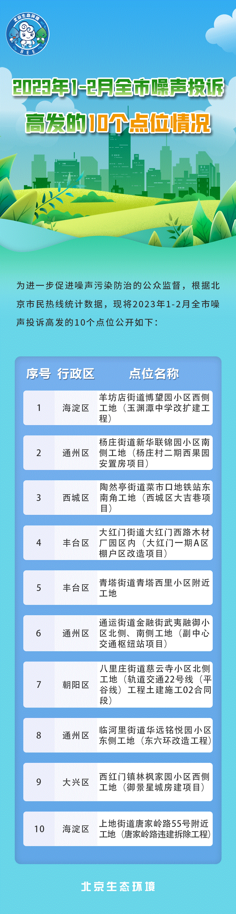 2023年1-2月全市噪声投诉高发的10个点位情况