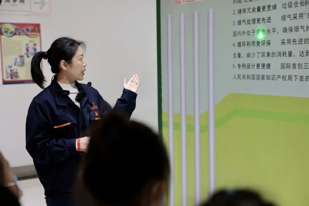 15组家庭首先来到展示大厅,讲解员刘老师借助展墙上的图片,逐一给孩子们讲解了焚烧中心的发展历程和工艺流程。主控室内的大屏幕上显示着垃圾从进厂到燃烧处理的全流程,每一个环节都有严格的环保标准。垃圾处理过程中产生的“副产物”各有其“去处”:垃圾渗沥液输送至渗沥液处理站进行达标处理;垃圾发酵产生的甲烷、臭气等有害气体进入锅炉焚烧;炉渣转运至建筑垃圾处理厂,经处理后可以制作成透水砖,飞灰由有资质的处理厂进行无害化处理。经过一系列环保处理,清洁焚烧中心不仅具有良好的环境效益,还实现了资源的最大化利用。