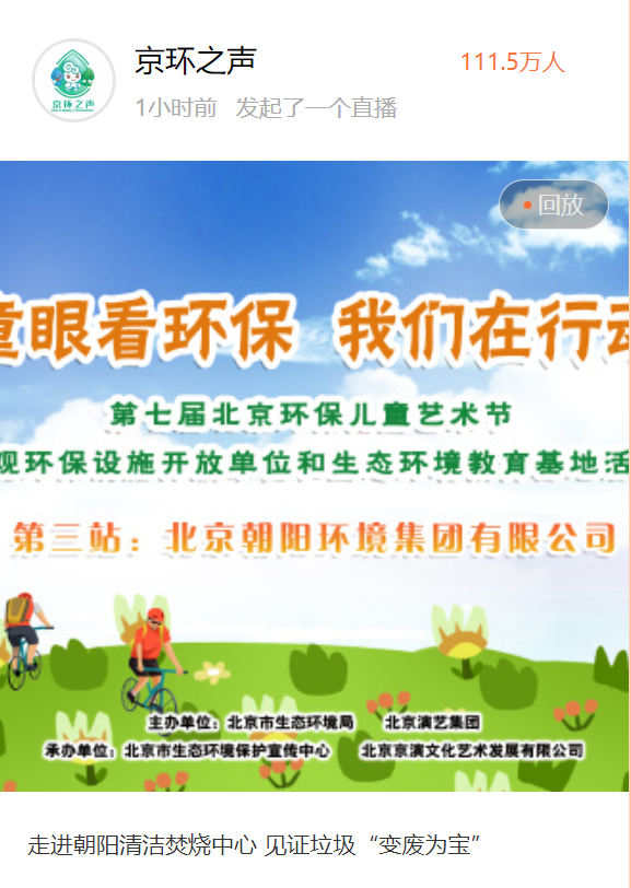 此次参观活动是第七届北京环保儿童艺术节“童眼看环保 我们在行动”参观环保设施开放单位和生态环境教育基地活动的第三站,活动主办方组织亲子家庭走入环保设施开放单位和生态环境教育基地,通过亲眼看、亲耳听、亲身体验的触感形式,全方位地增强了参观家庭对资源节约、垃圾分类的认识,通过线上直播形式也让更多公众了解环保,关注环保,共同践行简约适度、绿色低碳的生活方式。
