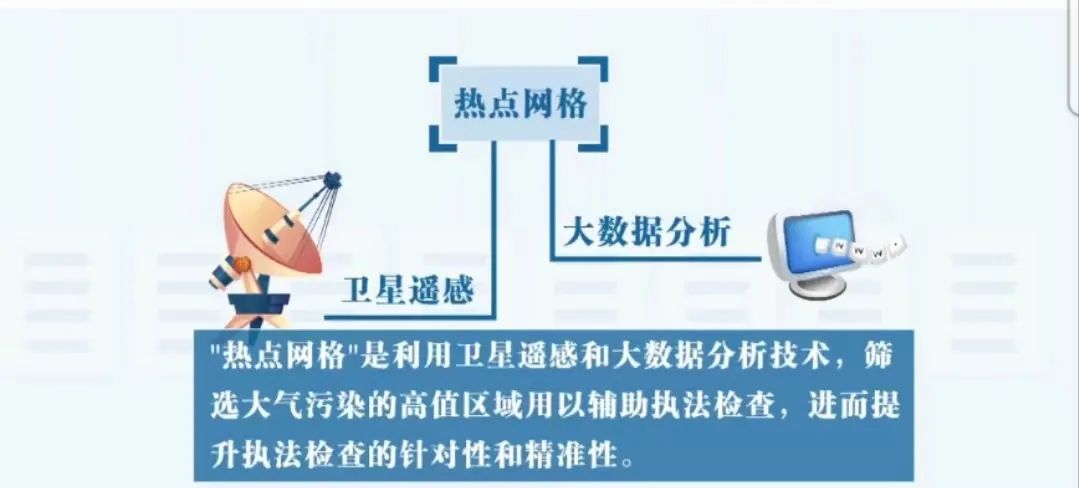 这项技术将几大数据(卫星遥感数据、空气质量监测数据、气象数据和污染源信息)进行了汇总分析,比较了同一时间段内不同网格污染物浓度值的大小,将浓度值相对高的作为报警网格,推送给执法队员作为执法参考。