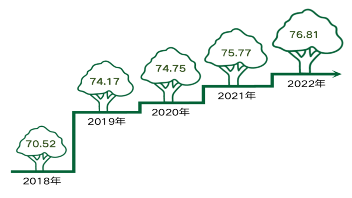 2023年六五环境日当天,北京市生态环境局发布了2022年北京市公众环境意识调查结果。调查显示,近五年北京市公众环境意识持续稳步提升,2022年公众环境意识指数为76.81,比2018年提高了6.29,同比提升1.04,其中环保行为践行度提高是2022年环境意识指数提高的主要因素。