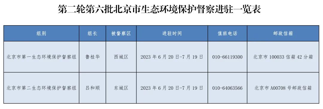 日前,经市委、市政府批准,北京市启动第二轮第六批生态环境保护督察。生态环境保护督察组分别进驻东城区和西城区,开展为期30天的市级生态环境保护督察。