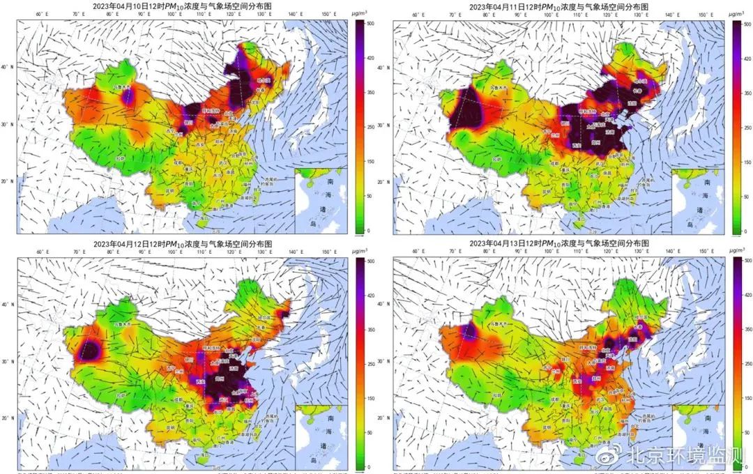 4月10-13日我国大范围沙尘影响PM10空间分布情况