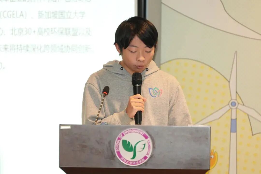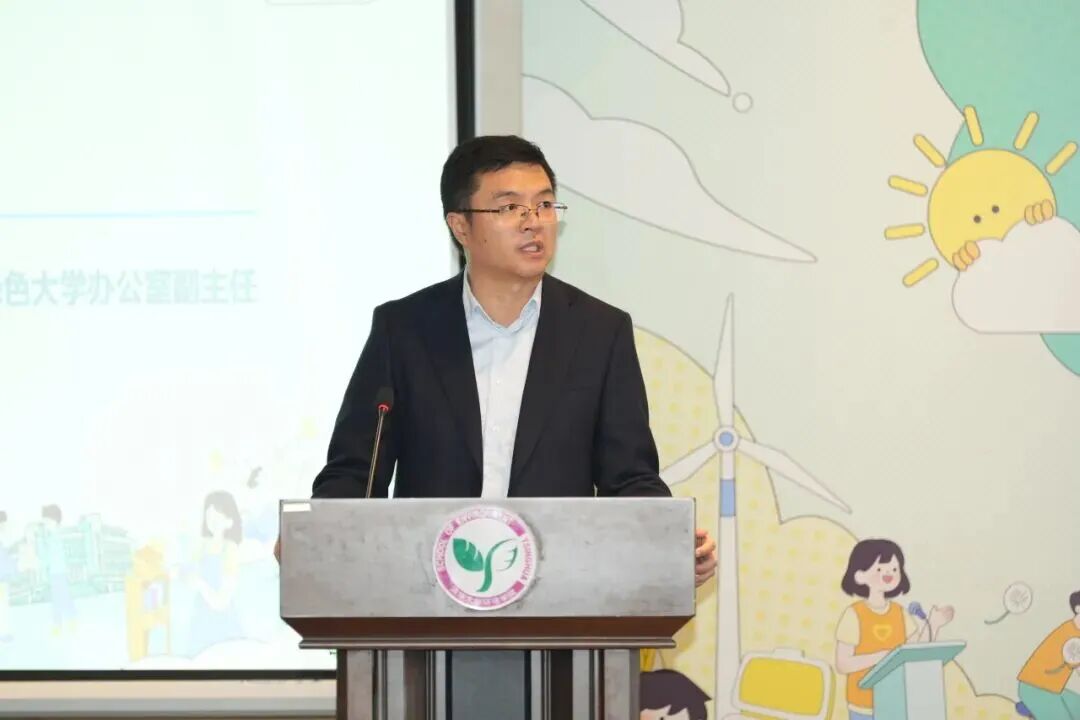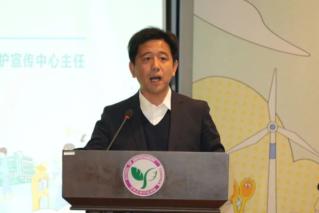 清华大学绿色大学办公室副主任胡彬致辞,他表示本届环保沙龙以 “新科技引领绿色生活” 为主题恰逢其时,期望嘉宾与同学们共话绿色科技成果,探讨实践路径,在思想交汇中凝聚青春力量,共筑绿色未来。