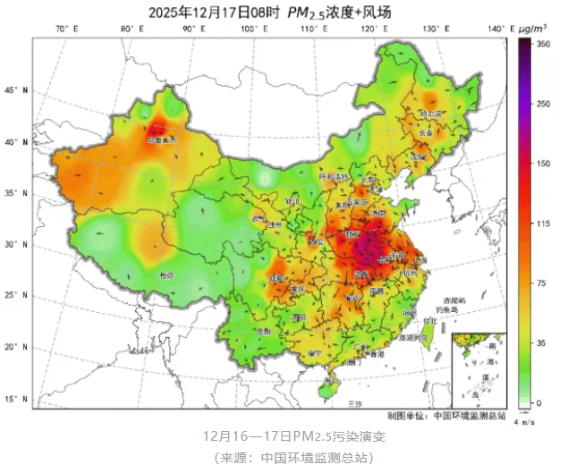 17日下午起,随着高压减弱,地面转偏南风,扩散条件转为一般,我市PM2.5浓度从17日白天起逐步爬升。