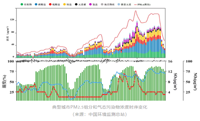 从PM2.5组分来看,硝酸盐占比普遍达到30%以上,表明重点行业和柴油车(机械)排放的氮氧化物及其二次转化,是PM2.5污染的主要原因。同时注意到,部分城市硫酸盐和SO2浓度出现短时升高,局地燃煤污染排放的贡献不容忽视。
